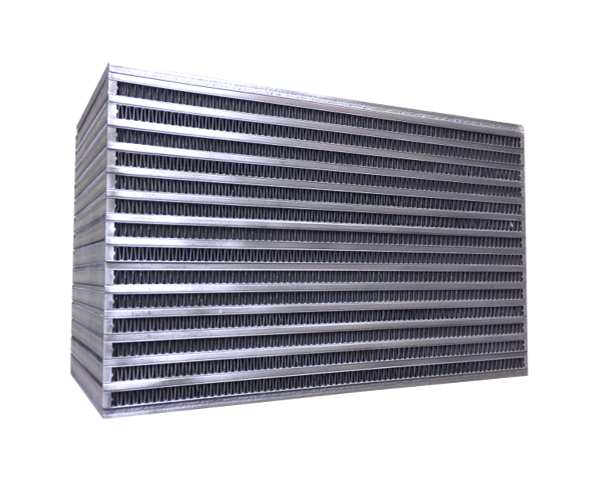 Built with the most advanced vacuum brazed aluminum alloy, and utilizing bar-and-plate construction and a unique fin design; our Peak Efficiency Liquid-to-Air intercooler cores offer exceptional cooling performance while minimizing pressure drop. Everything in our Peak Performance Liquid-to-Air intercooler core, from the strenght of its braze sheets, side-bars and end-plates, channel count, to its fin density and design, has been meticulously specified to give you the most cooling-efficient and power-producing intercooler core in the market.